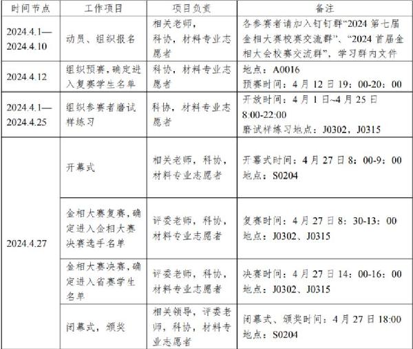 取决赛成绩的前8名同学参加省赛。金相大会采用个人赛形式,通过必答题和请