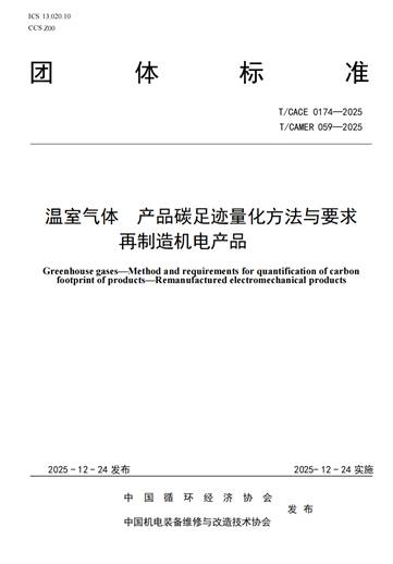 近日,公司陕西省表面工程与再制造重点实验室参编的《温室气体 产品碳足迹量化方法与要求 再制造机电产品》团体标准,由中国循环经济协会与中国机电装备维修与改造技术协会批准发布,编号为T/CACE 0174-2025、T/CAMER 059-2025,自发布之日起实施。