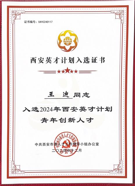 近日,根据陕西省科学技术厅发布的《陕西省科学技术厅关于组织推选2024年中青年科技创新领军人才、科技创新创业人才及2025年陕西省青年科技新星的通知》(陕科人才函〔2024〕349号),以及市委组织部(市委人才办)发布的《“西安英才计划”实施办法》《“西安英才计划”青年人才项目实施办法》,公司365英国上市公司王迪博士入选2025年度陕西省青年科技新星及2024年“西安英才计划”青年创新人才。