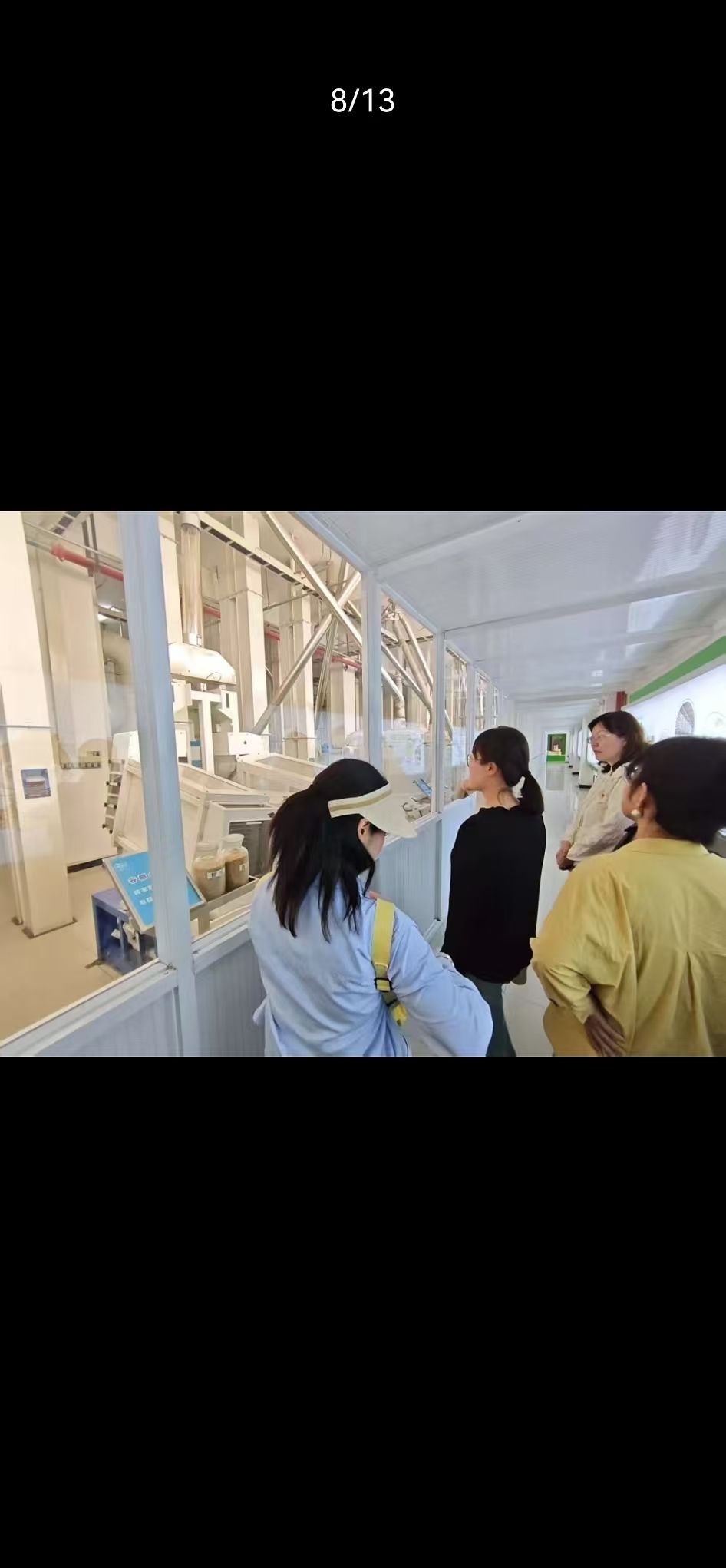 在体验馆专业讲解员的引导下,师生党员参观了企业发展历程展区,通过珍贵的历史影像与实物展品,系统了解爱菊集团从传统粮油企业向现代化智能工厂转型升级的发展轨迹。随后,师生走进全自动化粮油生产车间,近距离观摩智能仓储系统、自动灌装生产线及工业机器人等自动化设备的运行场景。自动化专业员工党员表示:“亲眼看到PLC控制系统在生产线上的实际应用,让我对课堂学习的运动控制原理有了更直观的认识”。
