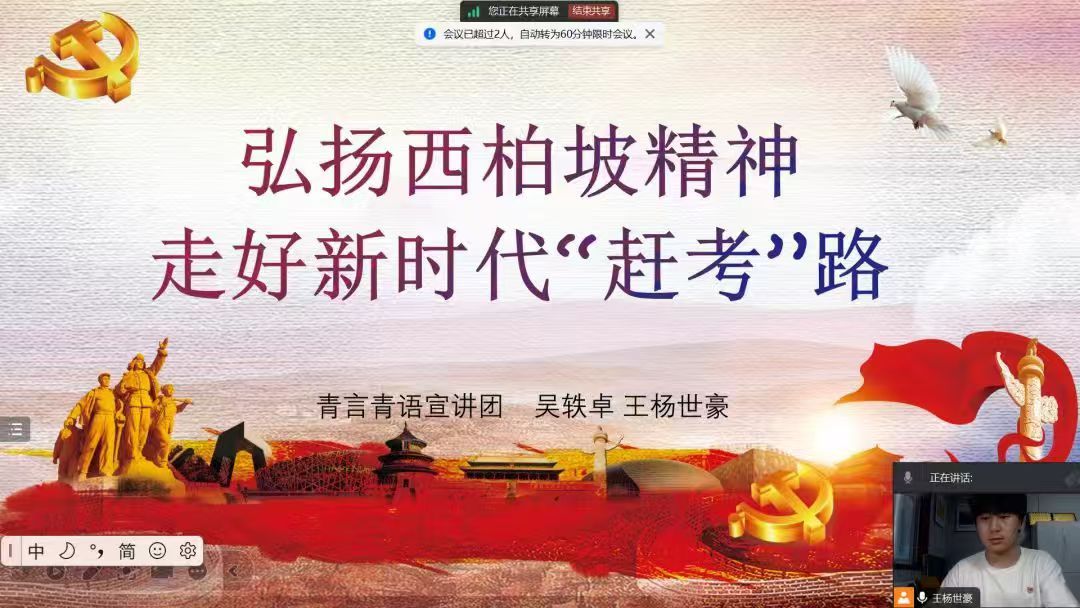 红色历史因铭记而永恒,红色精神因弘扬而不灭,红色基因因传承而鲜活。7月30日,老员工青言青语宣讲团面向物理光电师生党支部员工党小组的全体党员开展以“走好新时代‘赶考’路”为主题的西柏坡精神宣讲暨党小组专题活动。宣讲活动由员工党员、宣讲团成员吴轶卓主持,王杨世豪主讲。 王杨世豪同志从西柏坡精神的历史渊源、精神解析以及时代价值三个方面向员工党员进行了细致入微的讲解。他将毛泽东同志在党的七届二中全会上提出的“两个务必”与习近平总书记在党的二十大报告中提出的“三个务必”相结合,并指出从“两个务必”到“三个务必”,不变的是中国共产党人一以贯之、一脉相承的强烈忧患意识、良好工作作风与主动革命精神。这是我们党在不同历史时期战胜各种风险挑战、不断夺取胜利的强大精神力量和重要政治保证。他将西柏坡精神的内涵与时代价值同新时代老员工党员的时代使命相结合,号召员工党员要带头充分的学习和弘扬西柏坡精神,保持党的优良传统,深刻认识到自身的责任使命,勇于并善于投身于进一步全面深化改革和推进中国式现代化的进程中,充分发挥专业特长,在科技领域和行业中做出应有贡献。通过本次宣讲活动激励了员工党员赓续先辈遗志,做红色精神的传承人,让红色精神在更广阔的时空得到更广泛的传播,始终保持“赶考”的清醒和自觉,走好新时代“赶考”路,让青春在建设祖国中焕发绚丽光彩。