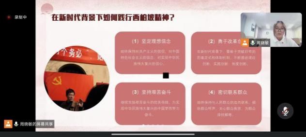 为贯彻落实习近平新时代中国特色社会主义思想,动员广大青年员工弘扬西柏坡精神,赓续革命前辈遗志,7月30日,老员工青言青语宣讲团面向机械师生党支部员工党员开展西柏坡精神专题宣讲暨党小组专题活动。机械师生党支部员工党小组全体党员参会,活动由员工党员崔存存组织,员工党员、宣讲团成员周晓敏主讲。