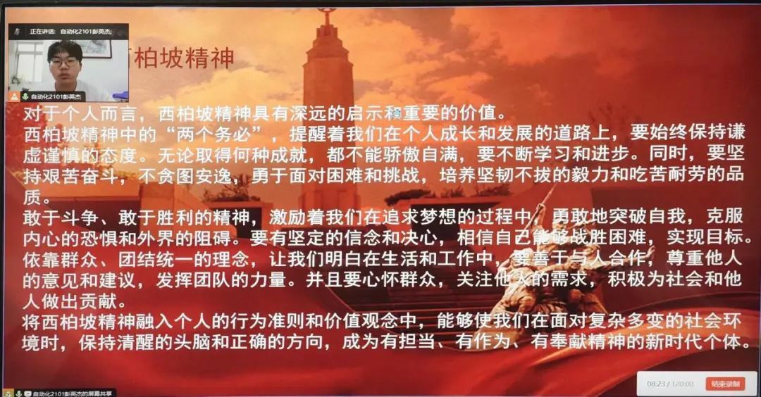 8月4日,老员工青言青语宣讲团面向材料师生党支部员工党小组开展西柏坡精神主题宣讲暨党小组专题活动,激励广老员工党员努力学习专业知识,在促进公司建设“最懂西安”应用型高水平城市大学中担当作为、干事创业。党小组全体党员、入党积极分子参会。活动由入党积极分子刘翔翔组织,员工党员、宣讲团成员彭英杰主讲,教师党员魏侨主持。