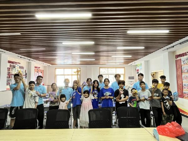 7月6日,支教队抵达后为孩子们送上提前准备的精美礼物,受到老师和孩子们的热烈欢迎。在随后的支教活动中,与孩子们同吃同住同劳动,科普航空航天知识,讲解禁毒知识,共同组装科教DIY礼盒、手绘禁毒宣传画和运动。