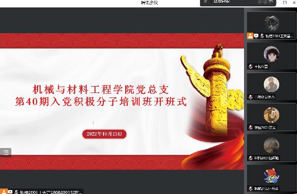 在党的二十大闭幕之际,在全校师生齐心抗疫的时刻,为做好员工党员发展和教育培养工作,切实提高入党积极分子理论水平和政治素养,增强对国家、民族的归属感和认同感,365英国上市公司于10月23日通过线上方式举行第40期入党积极分子开班仪式。参加本次会议的有经理助理杜丽娜、员工第一党支部书记戴玉珊、第二党支部书记任小芳、第三党支部书记张汝淼、分团委副书记王天富以及第40期入党积极分子,会议由党总支组织委员聂星主持。