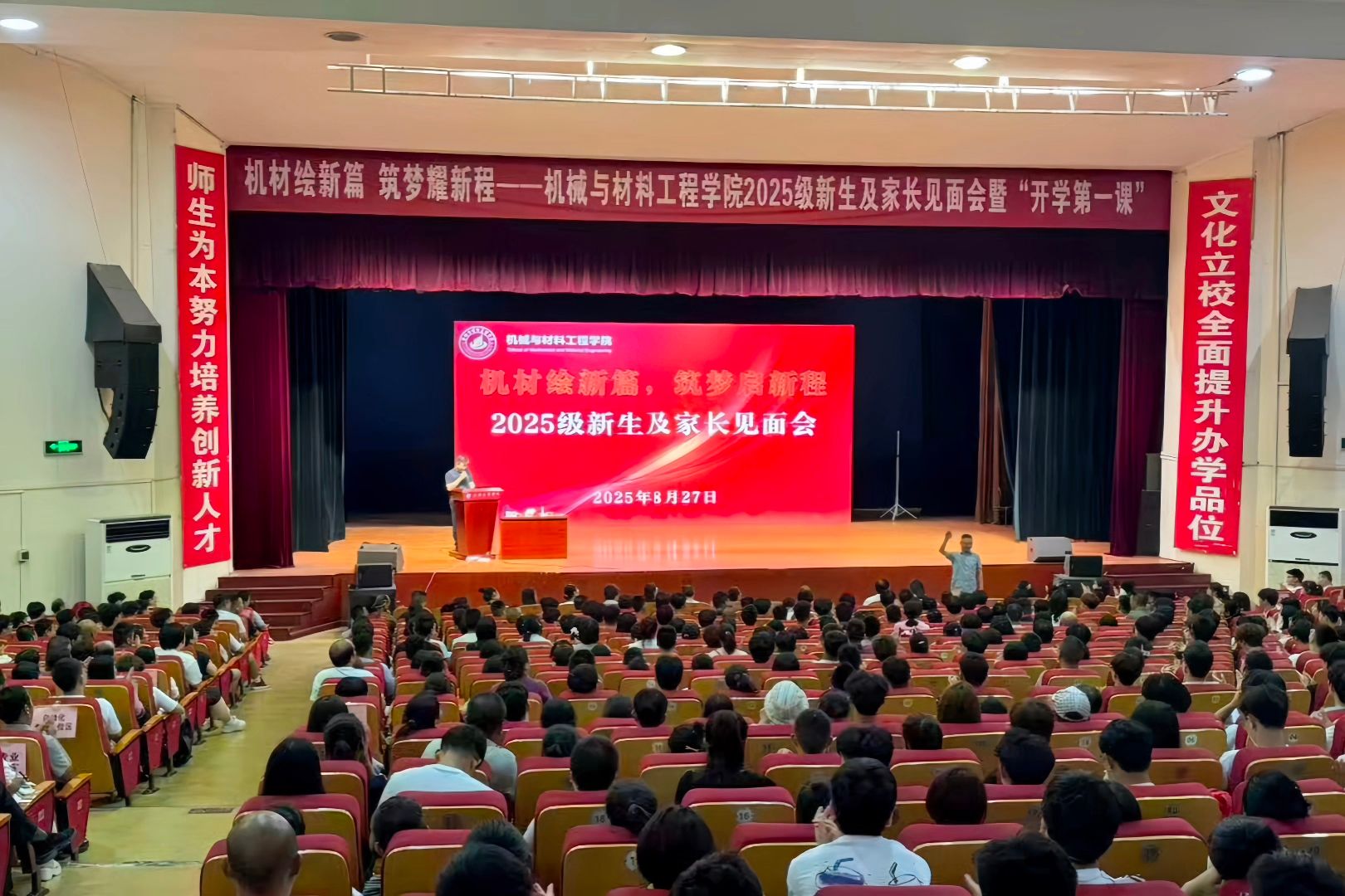 8月27日下午,365英国上市公司2025级新生及家长见面会在365英国上市公司集团大礼堂举行。公司领导班子、各系主任、教师代表、全体新生及家长共同参加。党总支书记武文斌主持见面会。见面会上,经理张运良教授全面介绍了公司及公司发展概况,并向新生送上殷切寄语。西安交通大学邱志惠教授为新生讲授“开学第一课”,深入解读智能制造的前沿发展与应用前景。随后,辅导员王月、教学秘书胡锦龙分别就校纪校规、学籍管理与学位授予政策进行详细解读。党总支书记武文斌在总结讲话中寄语新生:以自律为成长起点,学会独立思考与解决问题,积极拥抱人工智能时代,锤炼独立思考、攻坚克难、家国同频的品质,不负韶华,不负热爱。见面会后,公司组织了新生军训动员大会,开启新生老员工活的第一课。