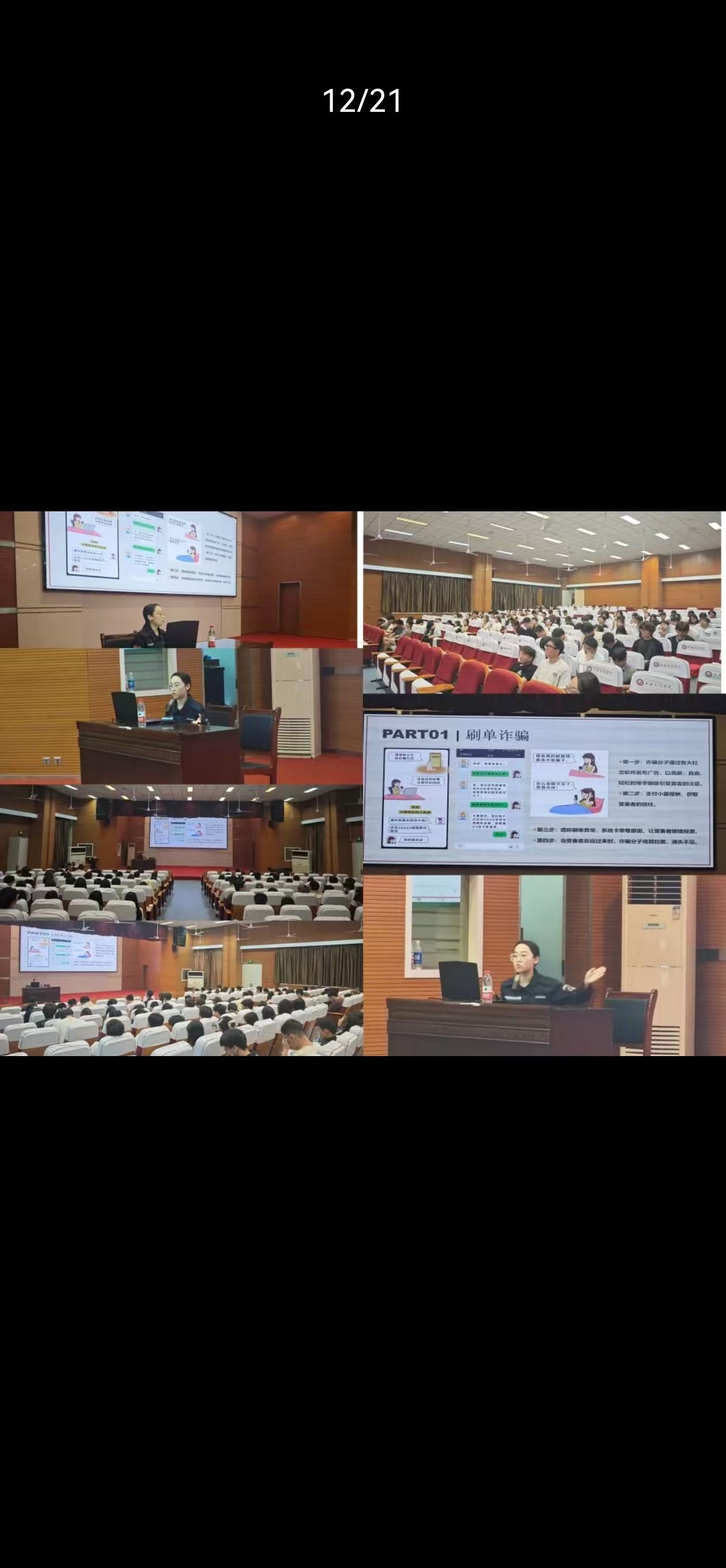 在活动当日,郭警官为广大师生开展了一场内容丰富、实用性强的反诈知识宣讲。她从六个维度全面阐述了对于常见诈骗手段的应对方法:包括刷单诈骗、招工诈骗、网贷类诈骗、游戏类诈骗、“杀猪盘”类诈骗以及注销校园贷诈骗的应对策略。郭警官的讲解理论联系实际,生动形象,辅以真实案例分析,极大地加深了同学们对反诈知识的掌握和理解。