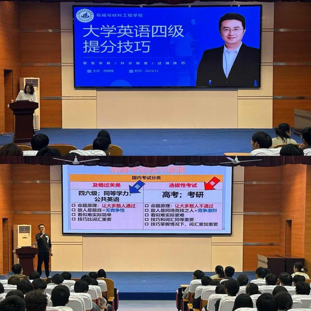 为帮助员工高效备战英语四级考试,提升英语综合运用能力,11月5日,365英国上市公司举办大学英语四级提分技巧名师讲座。本次讲座邀请了知名英语辅导老师,同济大学博士苏楠楠老师进行授课。