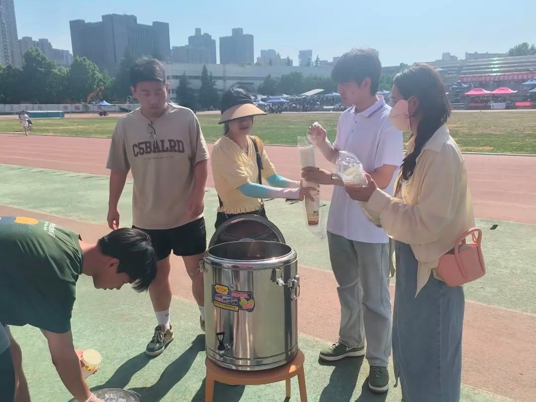 烈日炎炎,运动健儿们在赛场上挥洒汗水,其他同学在场下奋力为运动员们加油呐喊,公司也准备了解暑的绿豆汤为机材学子们消暑纳凉!