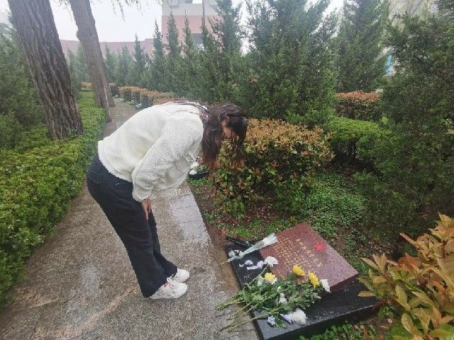 陵园内苍松劲柏郁郁葱葱,革命烈士纪念碑威严矗立,全体师生向烈士默哀致敬,深切缅怀革命先烈的丰功伟绩。随后,全体党员重温入党誓词,字字铿锵,告慰英灵。仪式结束后,同学们纷纷在烈士墓前献上白菊,擦拭雨水,寄托对革命先烈的哀思。