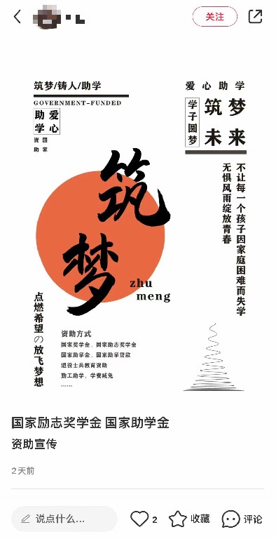 在本次活动中,我选择通过线上(小红书)+线下向大家广泛宣传国家资助政策,通过发布资助相关作品,有好多人通过私信咨询我,我也热心为他们一一解答。线下通过返回乡下及母校,走访调查了一些经济困难的家庭,向学弟学妹们进行了国家资助公益知识的普及,告知他们了国家资助的具体内容和注意事项并进行了大力宣传。