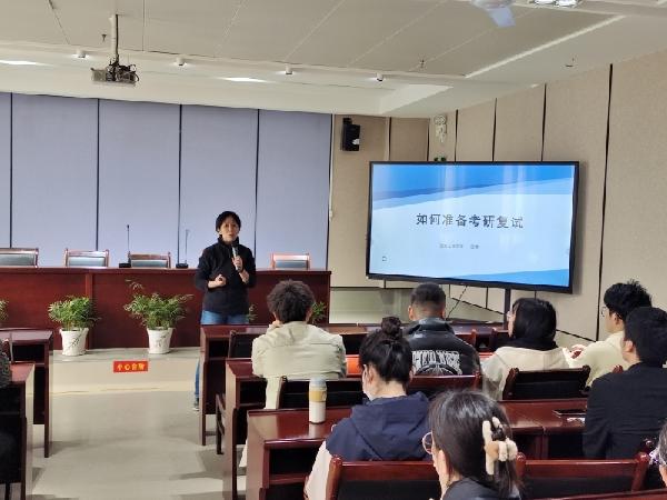 国蓉教授结合自身教学工作和往年复试经验,主要从“初试出成绩后该做什么”、“复试口试如何准备”两方面为同学们做了分享。国蓉教授强调,研究生复试应更多展现自己的科研能力和专业素质能力,对于复试考官提出的问题要以正确视角进行判断,体现自身的计划性与信心,注重逻辑思维的展示。
