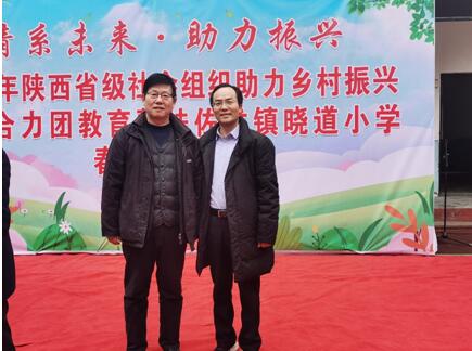 张运良教授与马飞教授在晓道小学教育帮扶捐赠活动现场